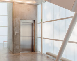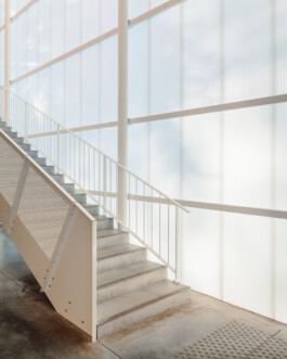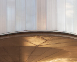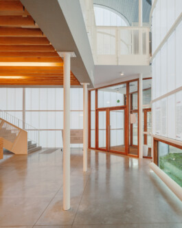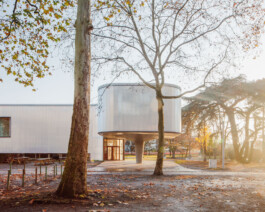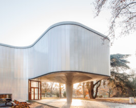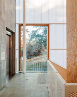 The architects implemented a simple strategy: an ultra-compact project encompassing the existing pavilion in a slightly enlarged translucent (polycarbonate sheets) envelope that allows the deployment of functions in peripheral spaces.