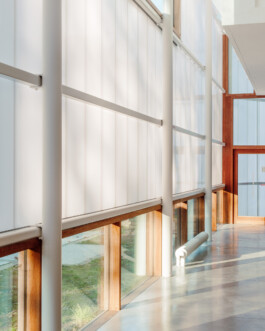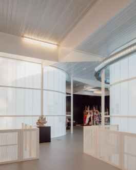 A few large windows frame views of the park like paintings and provide passers-by with selective views of the interior life of the museum.